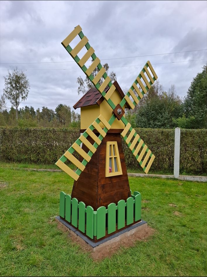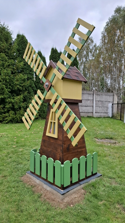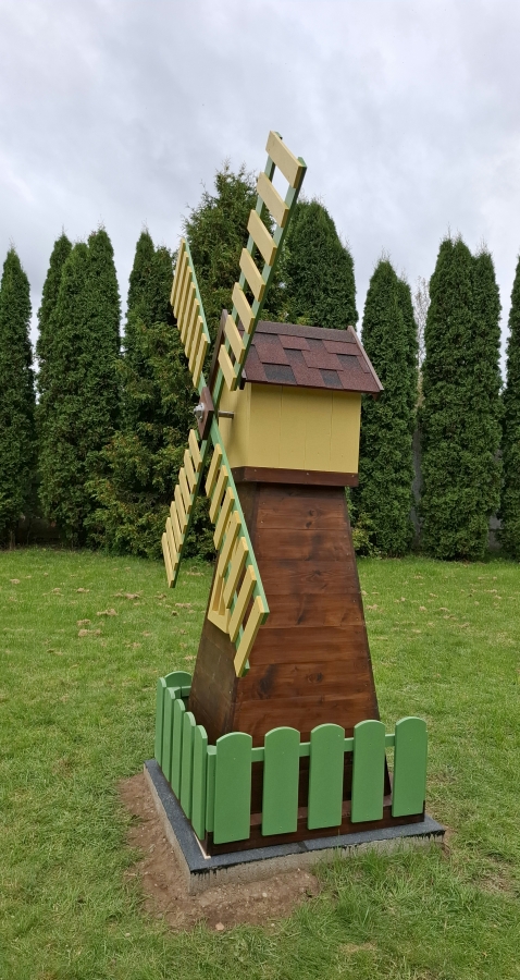 Dekoratīvs elements jūsu teritorijai. Rotējošie buras ir uzstādīti uz metāla vārpstas ar gultņiem.