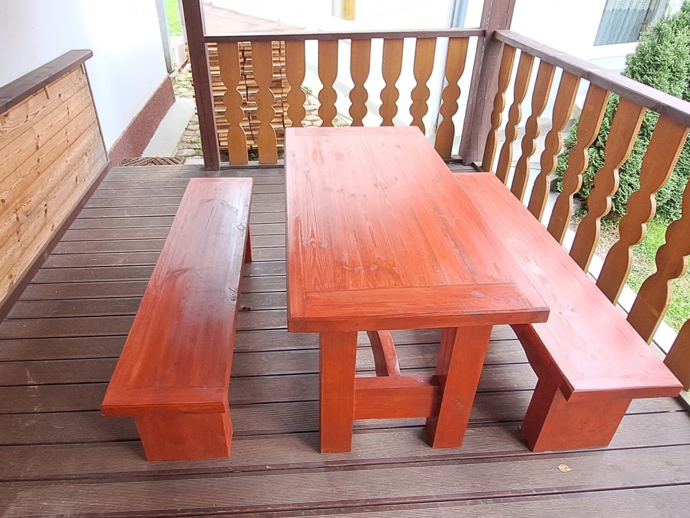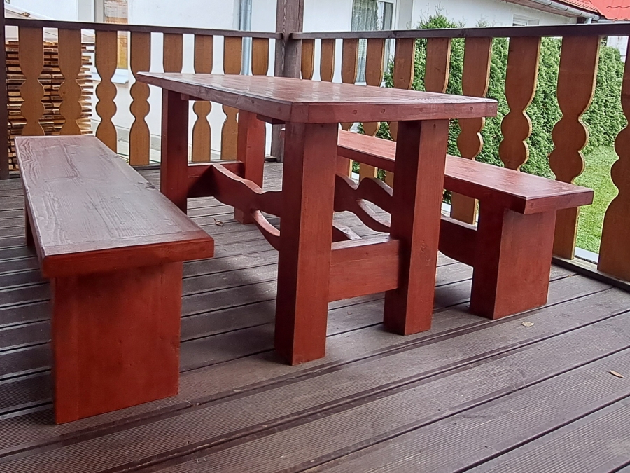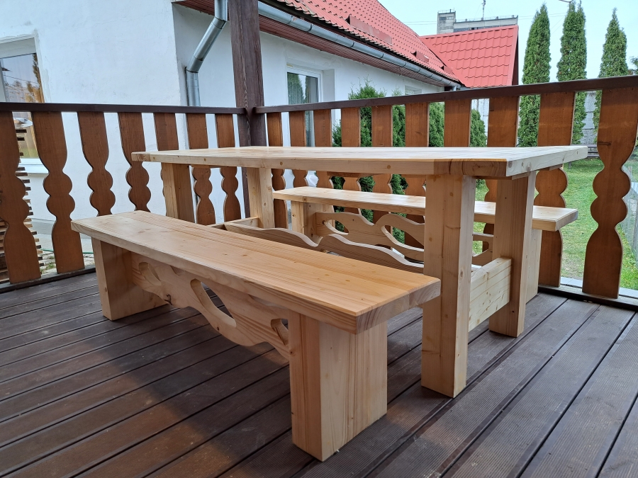 Galds un 2 soli izgatavota no egles dēļiem ~ 40 mm biezumā.