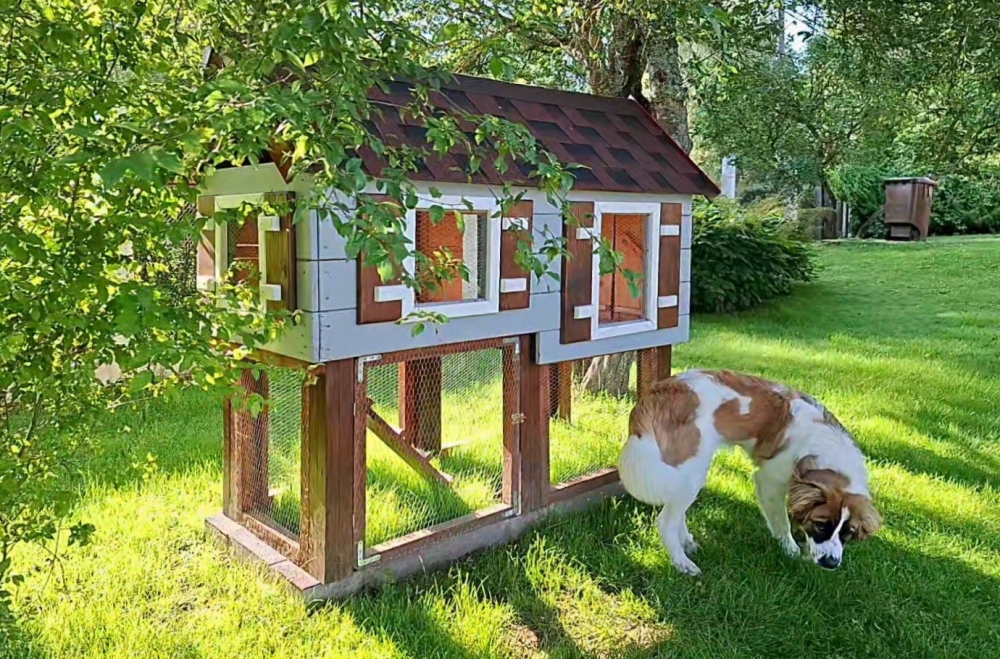 Trušu māja izgatavota no egles dēļiem ~23 mm biezumā.